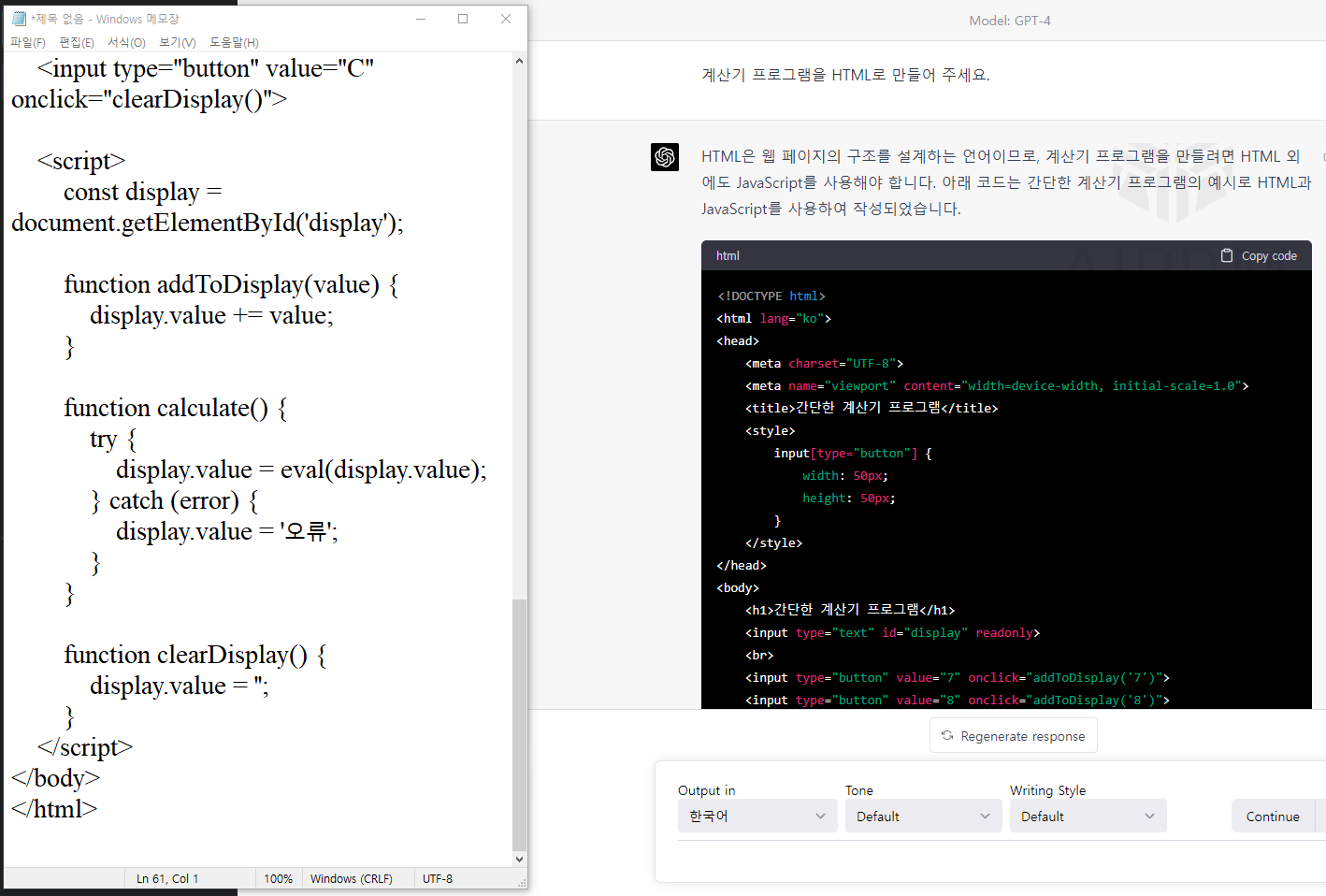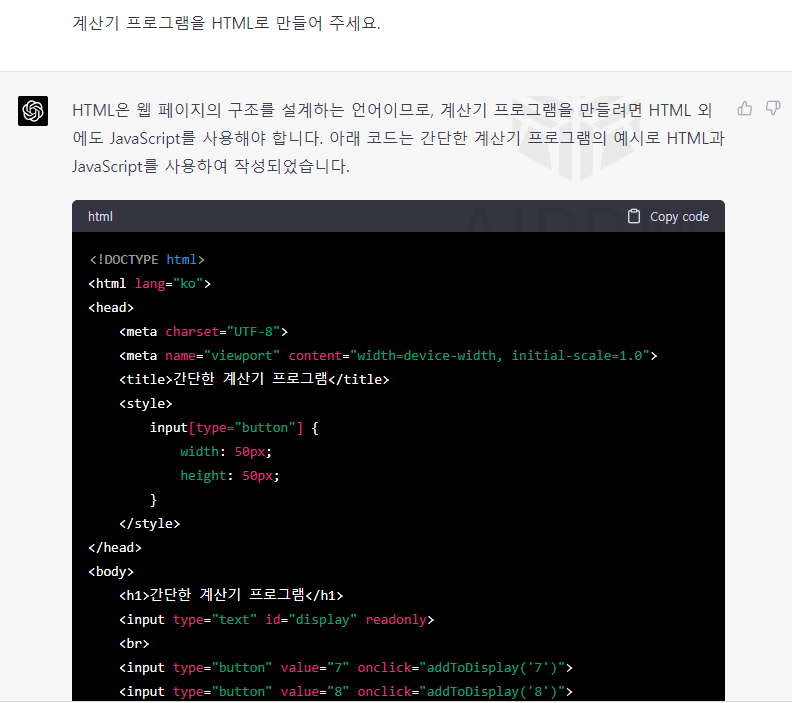 계산기 프로그램을 5초만에 만들었네요!